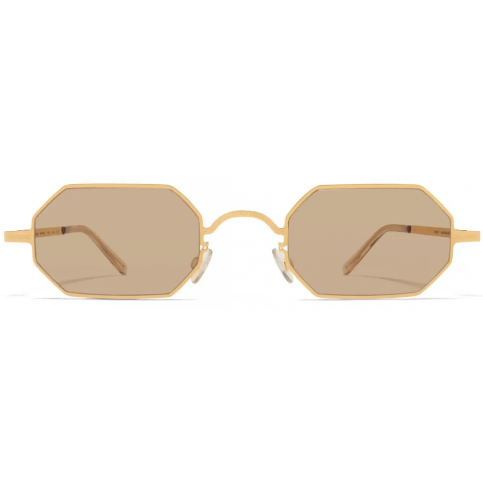 Made of lightweight stainless steel with functional details in acetate, MMCRAFT004 in Glossy Gold with Light Brown Solid lenses is a square-shaped sunglass frame from the MYKITA + MAISON MARGIELA collection. Handcrafted in Berlin.