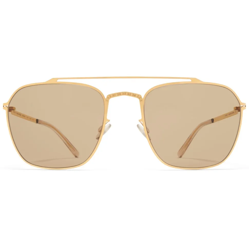 Made of lightweight stainless steel with functional details in acetate, MMCRAFT006 in Glossy Gold with Light Brown Solid lenses is a square-shaped sunglass frame from the MYKITA + MAISON MARGIELA collection. Handcrafted in Berlin.