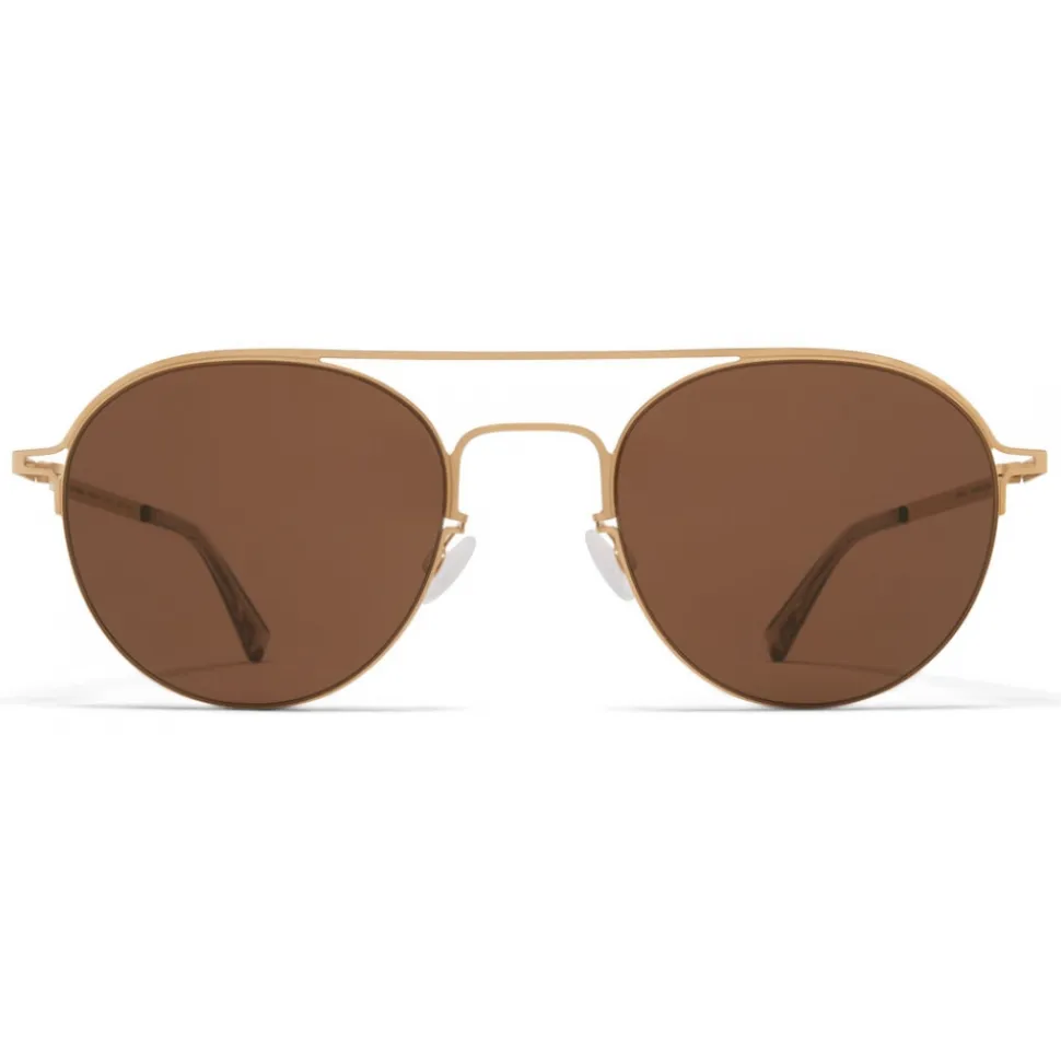 Made of lightweight stainless steel with functional details in acetate, MMCRAFT015 in Glossy gold with Brown Solid lenses is a panto-shaped sunglass frame from the MYKITA + MAISON MARGIELA collection. Handcrafted in Berlin.