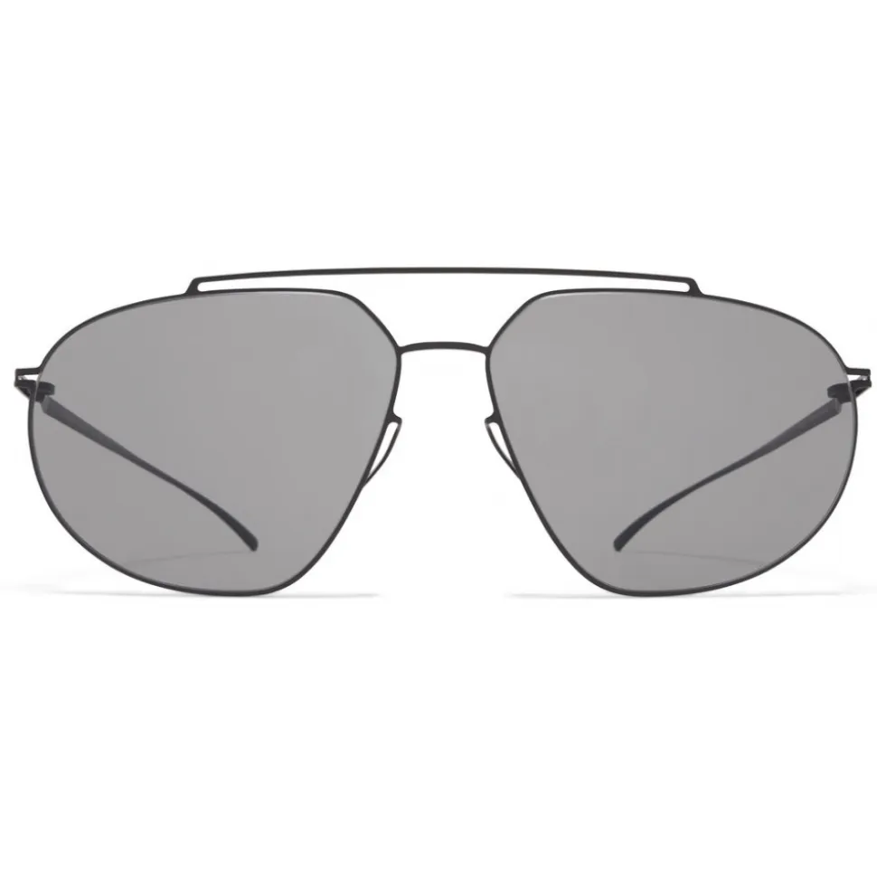 Made of lightweight stainless steel, MMESSE022 in E4 Black with Grey Solid lenses is an aviator-shaped sunglass frame from the MYKITA + MAISON MARGIELA collection. Handcrafted in Berlin.