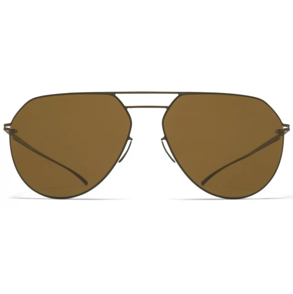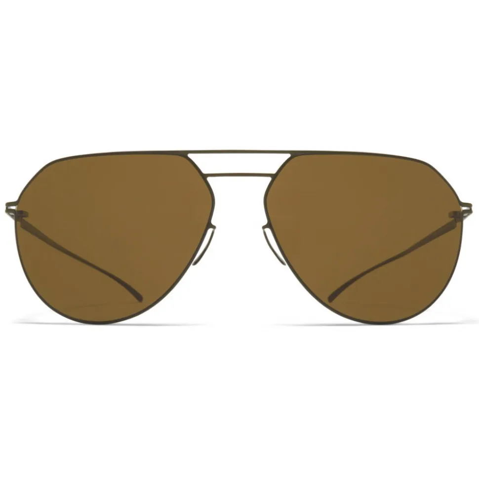 Made of lightweight stainless steel, MMESSE027 in E16 Camou Green with Raw Brown Solid lenses is an aviator-shaped sunglass frame from the MYKITA + MAISON MARGIELA collection. Handcrafted in Berlin.