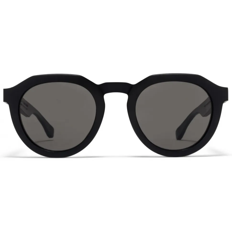 Made of unpolished acetate, MMRAW007 in Raw Black with Dark Grey Solid lenses is a panto-shaped sunglass frame from the MYKITA + MAISON MARGIELA collection. The visible traces of the milling process make each model unique. Handcrafted in Berlin.