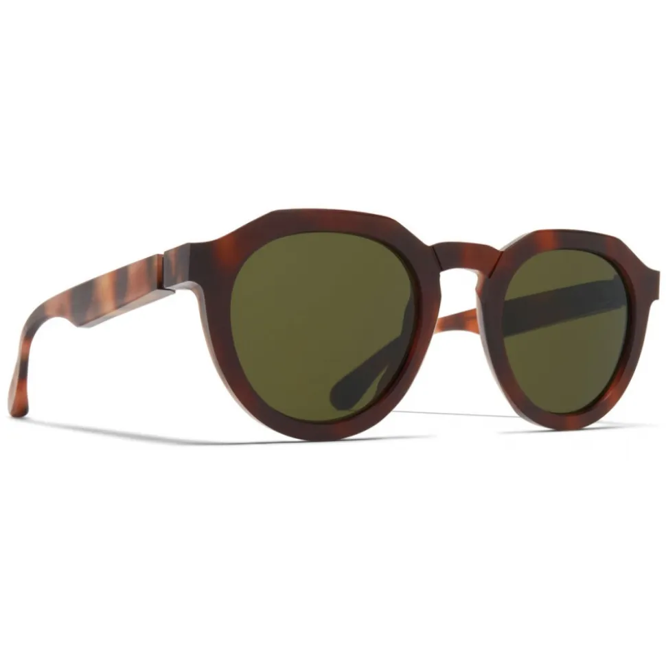 Made of unpolished acetate, MMRAW007 in Raw Zanzibar with Raw Green Solid lenses is a panto-shaped sunglass frame from the MYKITA + MAISON MARGIELA collection. The visible traces of the milling process make each model unique. Handcrafted in Berlin.