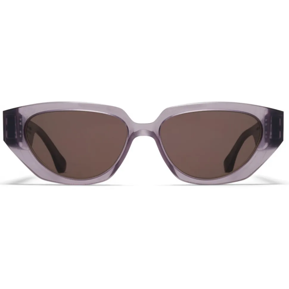Made of unpolished acetate, MMRAW015 in Raw Smoke with Brown Solid lenses is a butterfly-shaped sunglass frame from the MYKITA + MAISON MARGIELA collection. The visible traces of the milling process make each model unique. Handcrafted in Berlin.