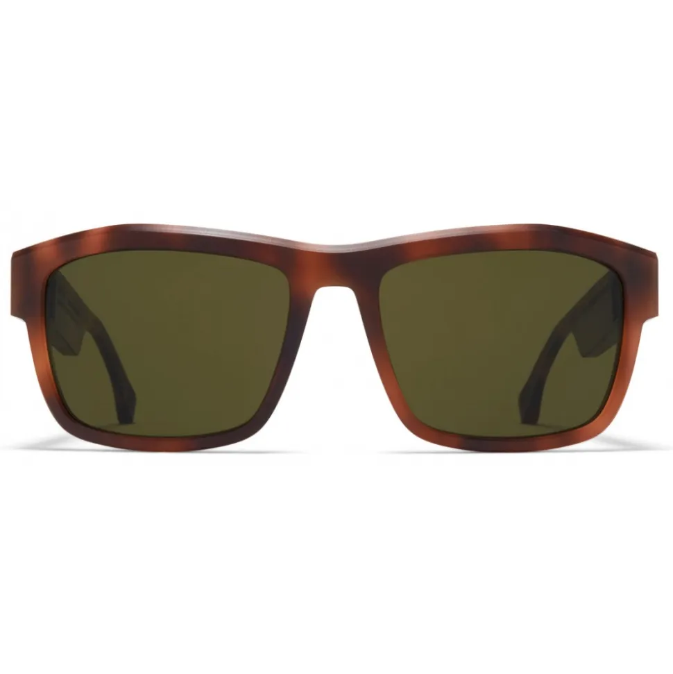Made of unpolished acetate, MMRAW017 in Raw Zanzibar with Raw Green Solid lenses is a square-shaped sunglass frame from the MYKITA + MAISON MARGIELA collection. The visible traces of the milling process make each model unique. Handcrafted in Berlin.