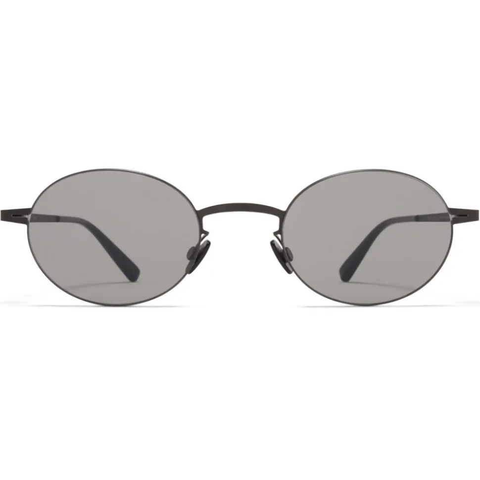 Made of lightweight stainless steel, NAOKO in Black with Grey Solid lenses is a oval-shaped sunglass frame from the MYKITA LESSRIM collection. Handcrafted in Berlin.