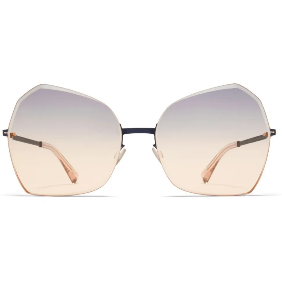 Made of lightweight stainless steel, STUDIO10.1 in Gold/Indigo with Grey/Orange Facette lenses is a butterfly-shaped sunglass frame from the MYKITA STUDIO collection. Handcrafted in Berlin.