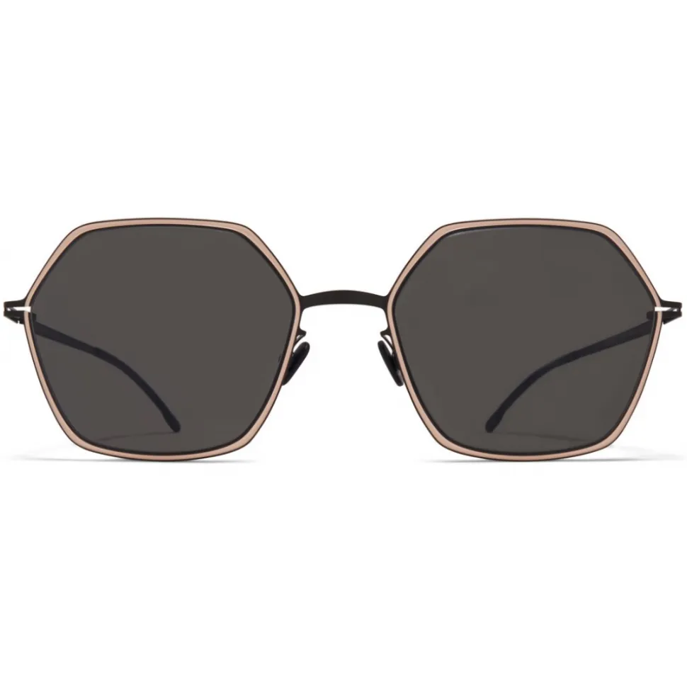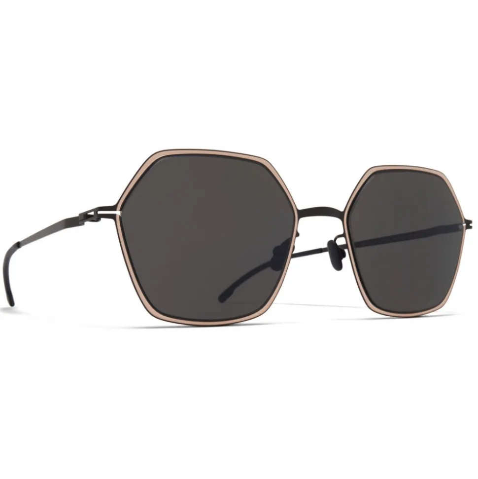 Made of lightweight stainless steel, TILLA in Black/Sand with Dark Grey Solid lenses is a square-shaped sunglass frame from the MYKITA DECADES collection with a geometric rim design. Handcrafted in Berlin.