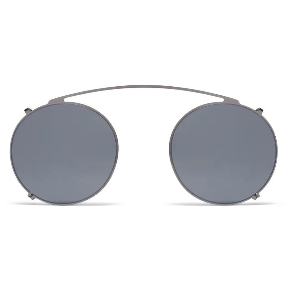 Made of ultra-light stainless steel, TOMKIN SHADES in Shiny Graphite with Dark Blue Solid lenses is a customised clip-on that transforms the look and function of its respective MYKITA actetate frame. Handcrafted in Berlin.