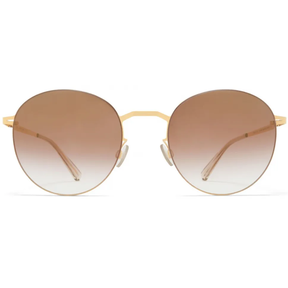 Made of lightweight stainless steel, TOMOMI in Glossy Gold with Brown Gradient Gold Mirror lenses is a panto-shaped sunglass frame from the MYKITA LESSRIM collection. Handcrafted in Berlin.