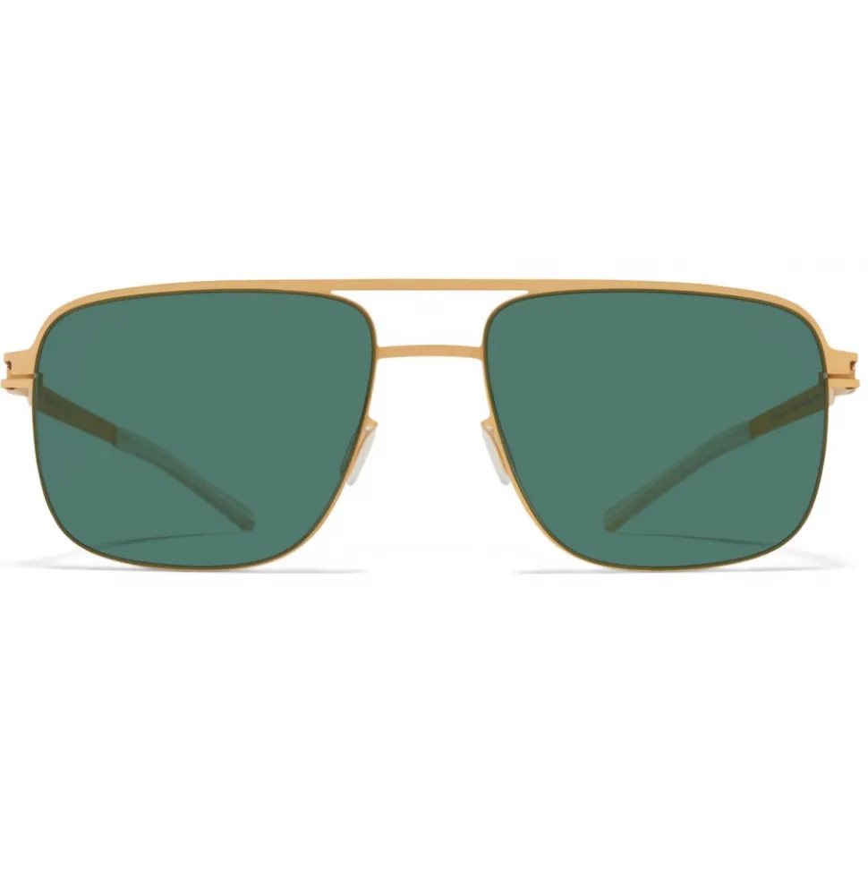 Made of lightweight stainless steel, WILDER in Frosted Gold with Dark Green Solid lenses is a square-shaped sunglass frame from the MYKITA NO1 collection. Handcrafted in Berlin.
