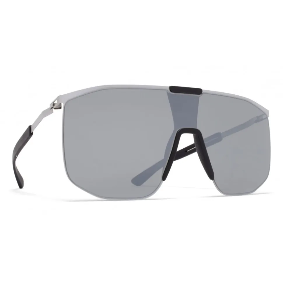 Made of light stainless steel with functional details in MYLON, YARROW is a shield-shaped sunglass frame from the MYKITA MYLON collection. Handcrafted in Berlin.