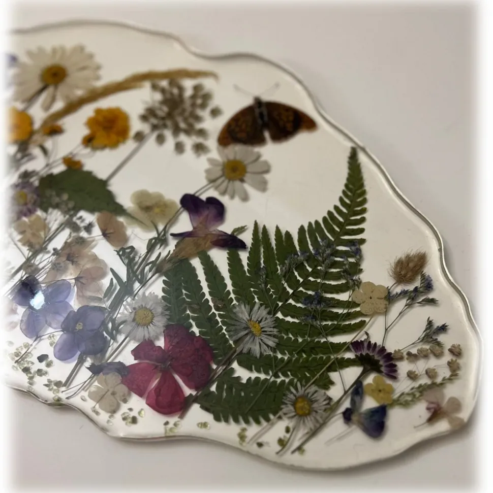 Natusi – Resin Art – Spring – Artisan Plate with Natural Flowers – Handmade – Furnishings – Home