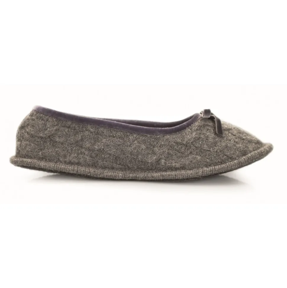 Slippers in woven boiled wool, ballerina model. Lambskin lining that assures maximum heat. Passementerie in elasticized velvet, sole in wool cloth with latex and rubber coating that works as non-slip. 6 mm lining.