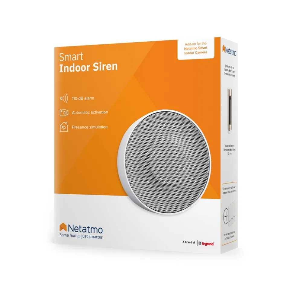 The Netatmo Smart Indoor Siren combines perfectly with the Smart Indoor Camera, for even more effective protection of your home. Thanks to facial recognition, the camera distinguishes between a known and an unknown face, an animal or an irrelevant movement: therefore, no more false alarms.
