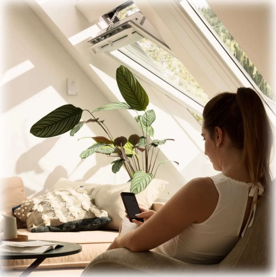 Control your VELUX INTEGRA® electric roof windows, blinds and shutters wherever you are via smartphone. Check the status of your VELUX products and open/close them with a simple touch if necessary.