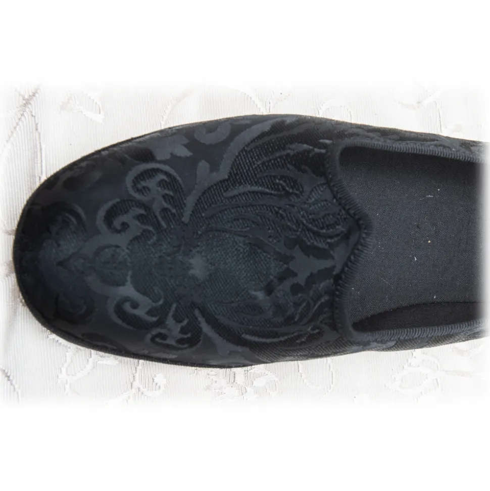 Nicolao Atelier – Furlana Slipper in Damask – Black Color Man – Shoe – Made in Italy – Luxury Exclusive Collection