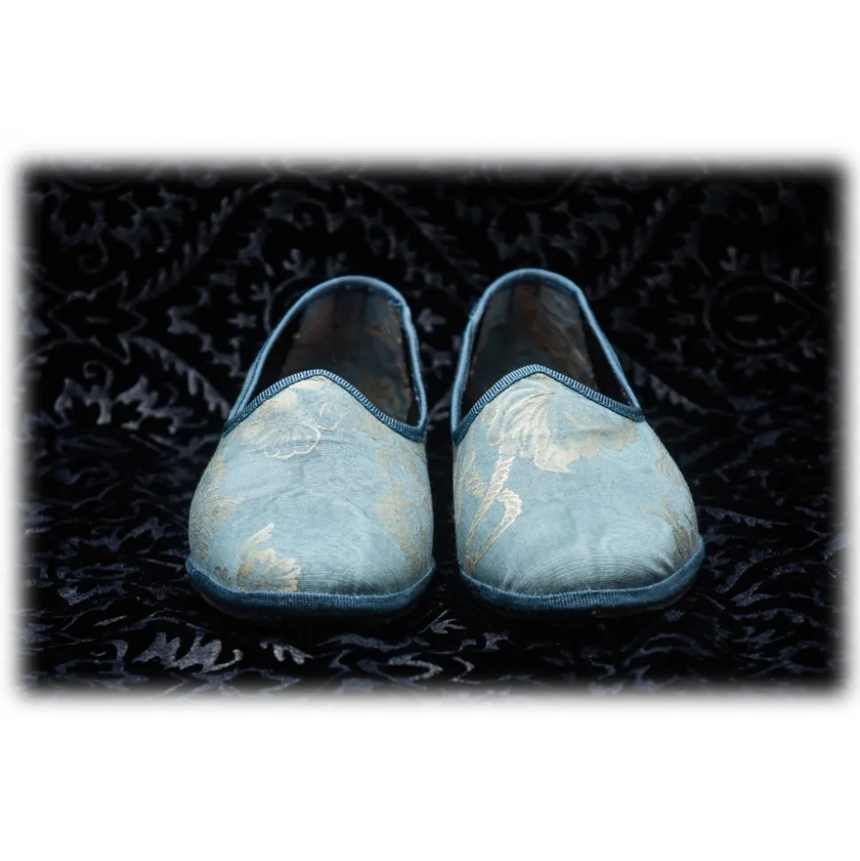 Nicolao Atelier – Furlana Slipper in Damask – Blue Color Woman – Shoe – Made in Italy – Luxury Exclusive Collection