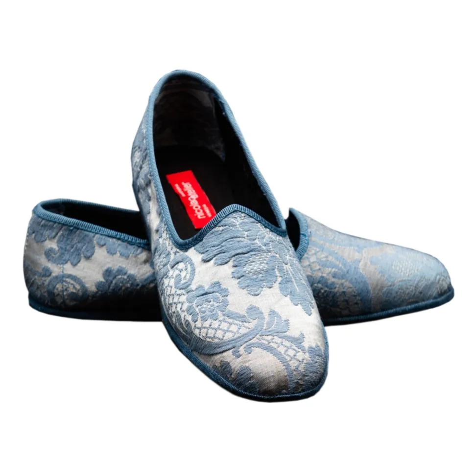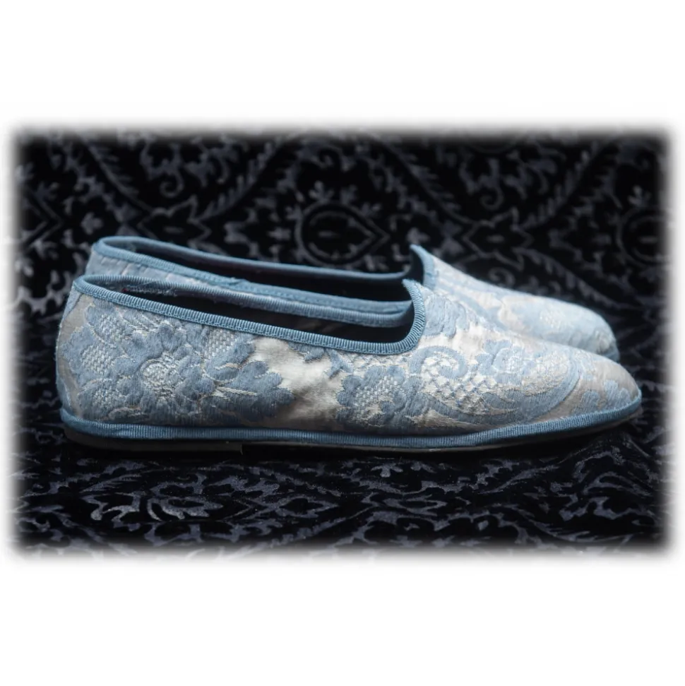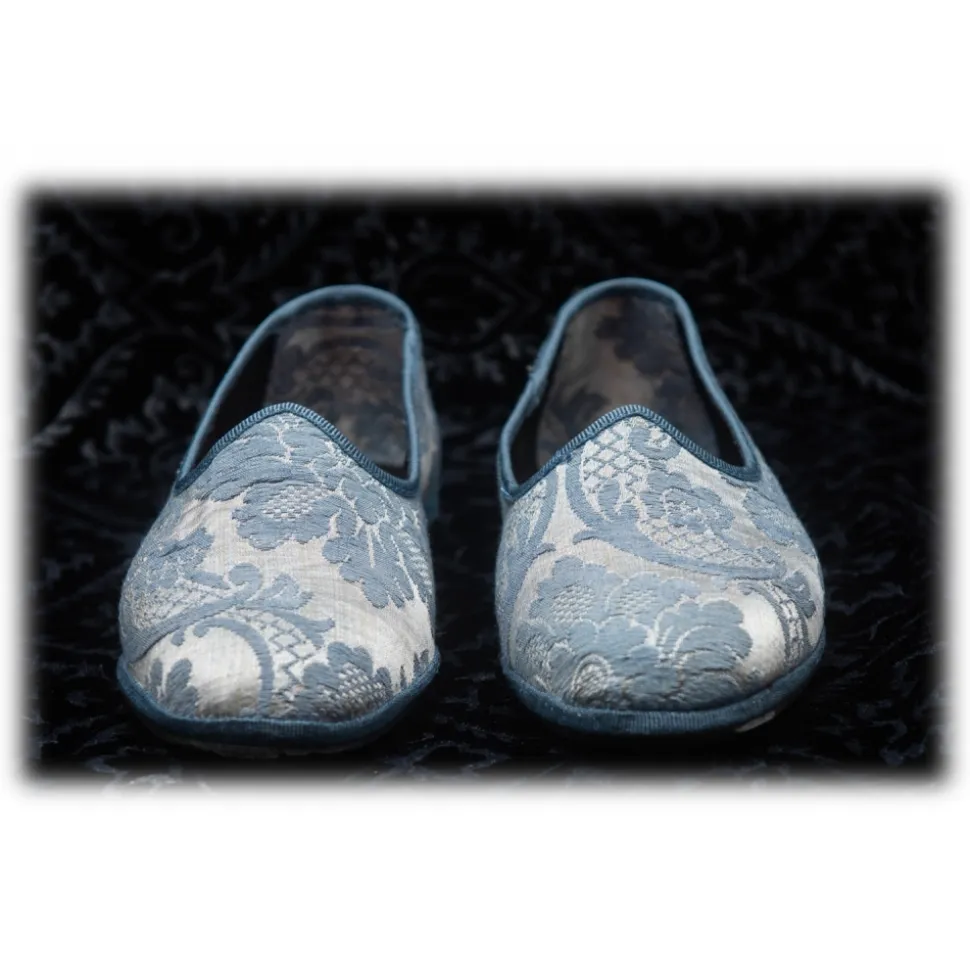 Nicolao Atelier – Furlana Slipper in Damask – Celeste Color Woman – Shoe – Made in Italy – Luxury Exclusive Collection