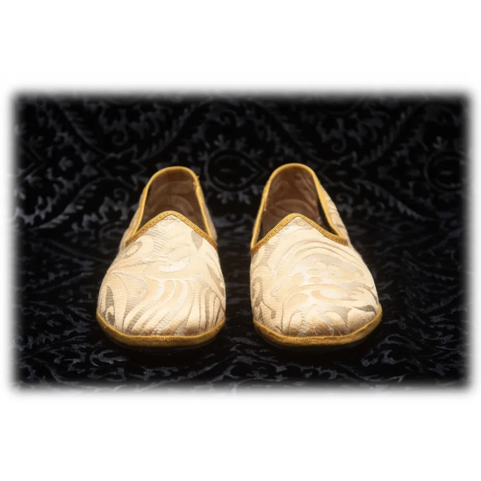Nicolao Atelier – Furlana Slipper in Damask – Gold Color Woman – Shoe – Made in Italy – Luxury Exclusive Collection