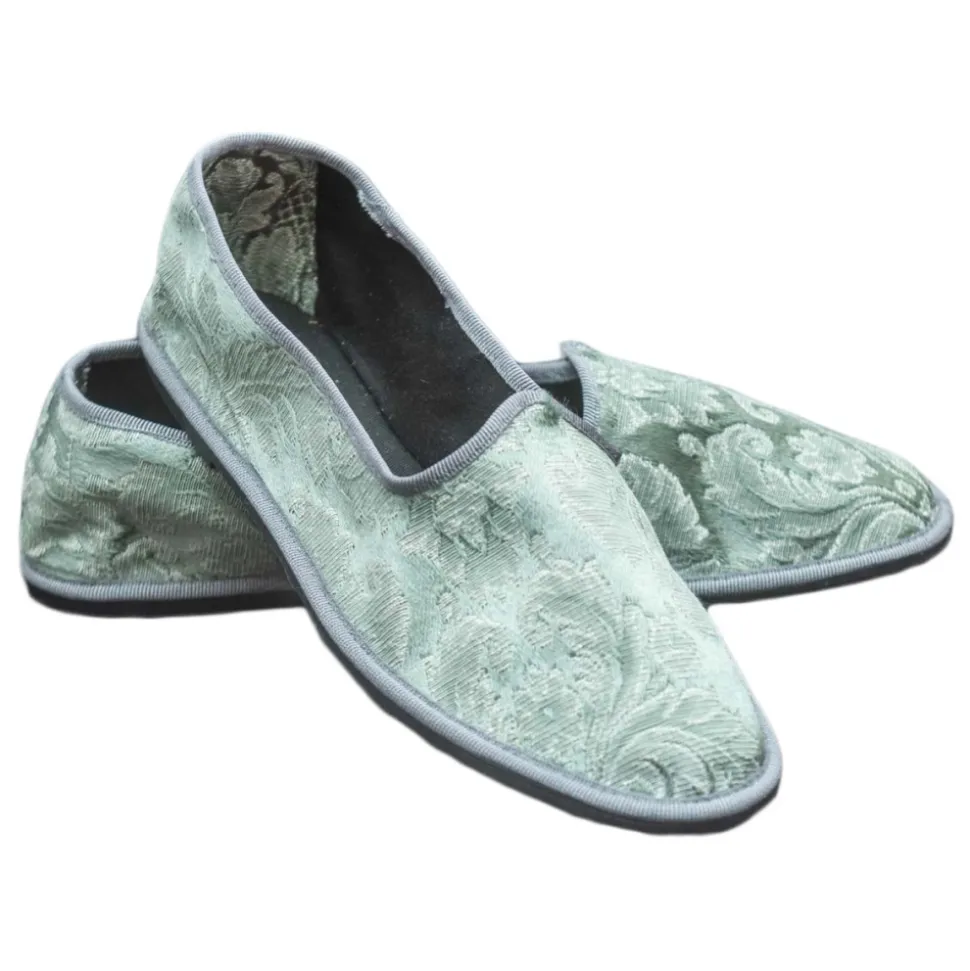 Nicolao Atelier – Furlana Slipper in Sage Green Silk Damask – Woman – Shoe – Made in Italy – Luxury Exclusive Collection
