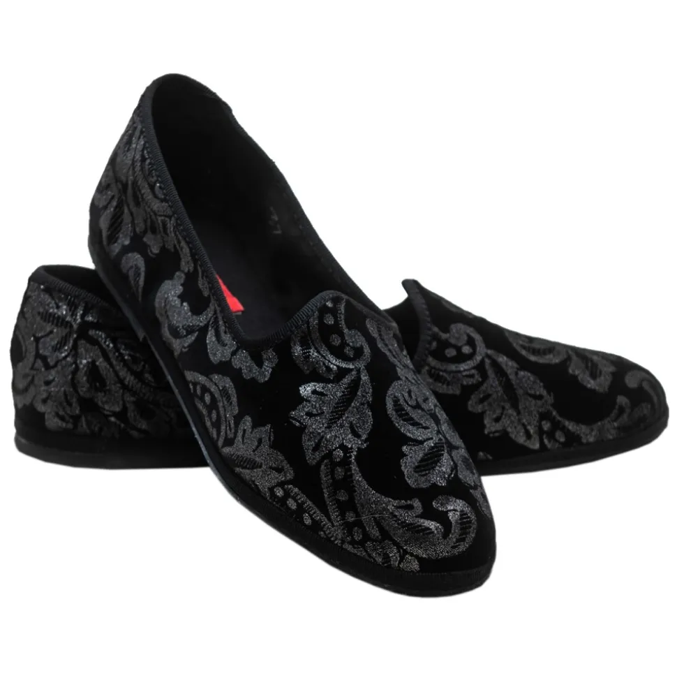 Silver damask black silk velvet slipper.