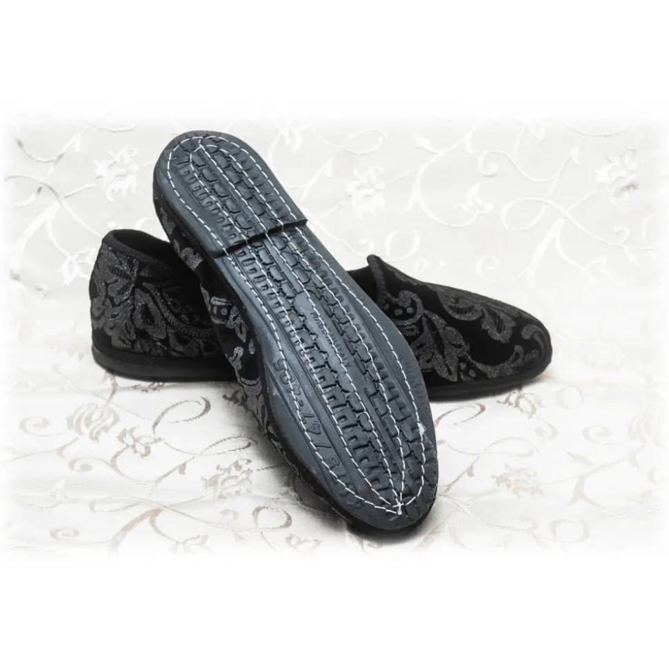 Nicolao Atelier – Furlana Slipper in Silk Velvet – Black Color with Silver Motifs Woman – Shoe – Made in Italy – Luxury Exclusive Collection