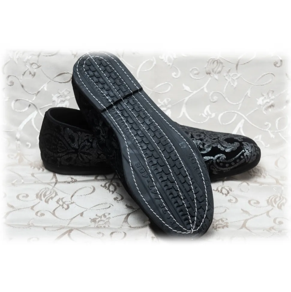 Nicolao Atelier – Furlana Velvet Slipper – Color Black Silver Damask Man – Shoe – Made in Italy – Luxury Exclusive Collection
