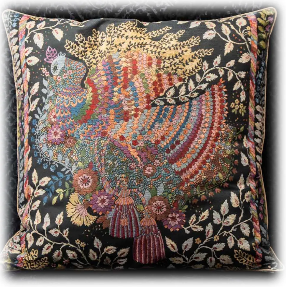 Nicolao Atelier – Rubelli Silk Cushion – Peacock Motif Grey Color – Pillow – Made in Italy – Luxury Exclusive Collection