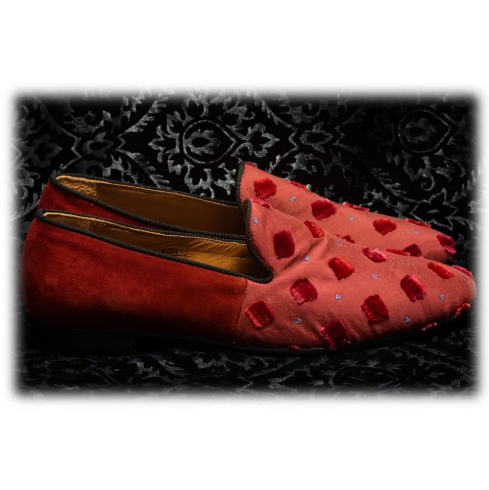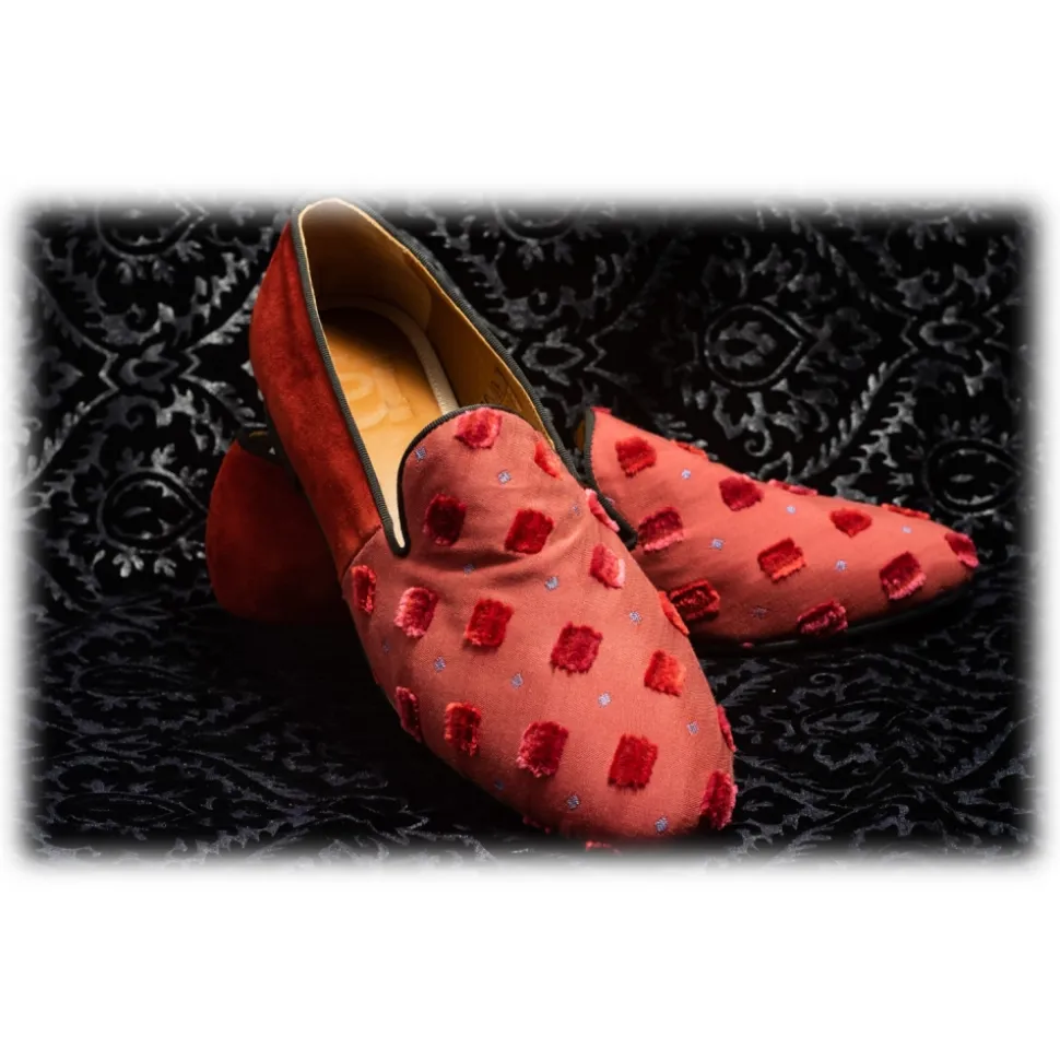 Nicolao Atelier – Silk Slipper Sock – Red Color with Red Velvet Check Pattern Man – Shoe – Made in Italy – Luxury Exclusive Collection