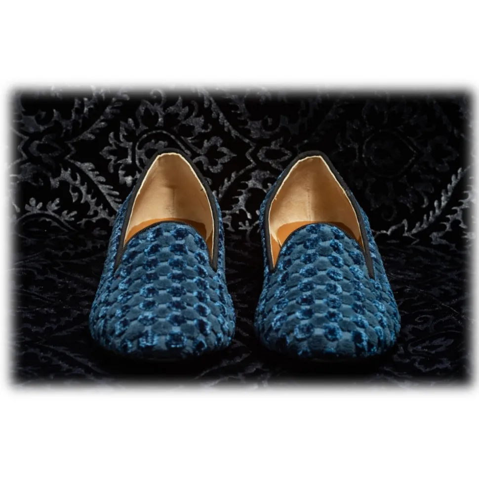 Nicolao Atelier – Velvet Slipper Sock – Light Blue Checkered Color with Embossed Pattern Woman – Shoe – Made in Italy – Luxury Exclusive Collection