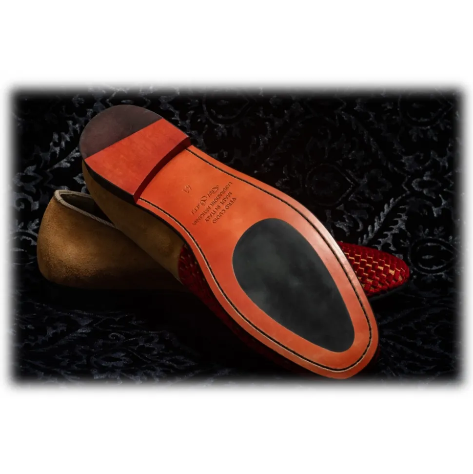 Nicolao Atelier – Velvet Slipper Sock – Red Color with Check Pattern Man – Shoe – Made in Italy – Luxury Exclusive Collection