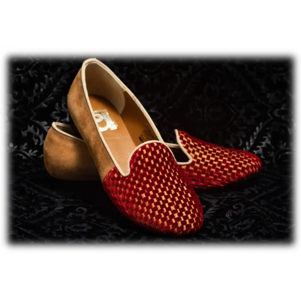 Nicolao Atelier – Velvet Slipper Sock – Red Color with Check Pattern Woman – Shoe – Made in Italy – Luxury Exclusive Collection