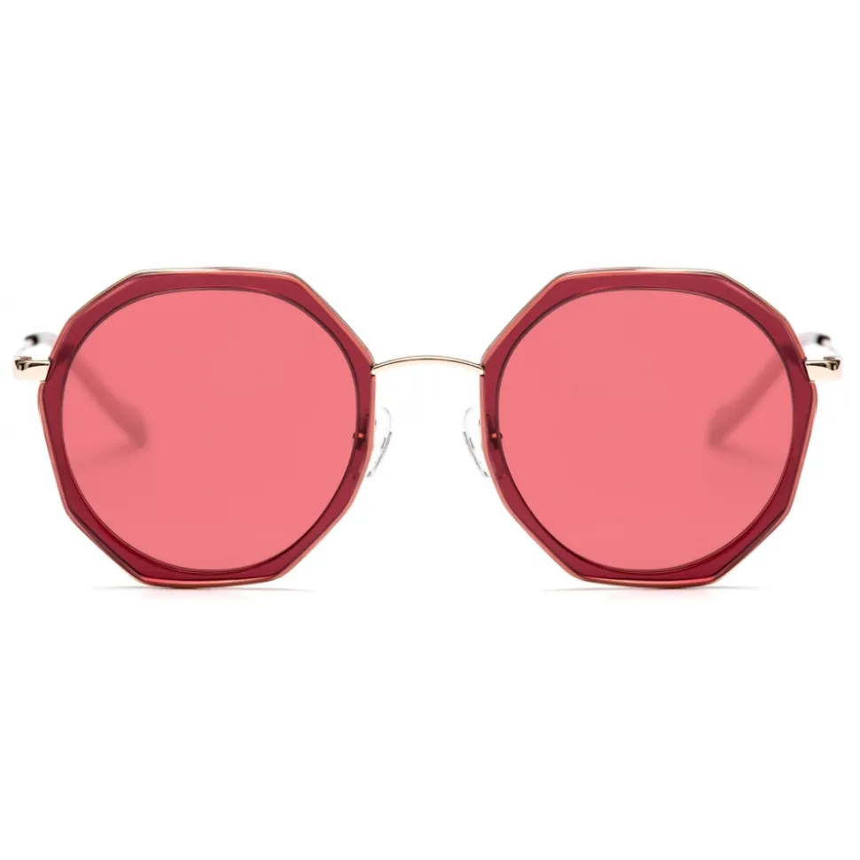 The No Logo Eyewear 19029 sunglasses is available in three beautiful color variations. All lenses are polarized, dark havana and burgundy colors are available with mirrored lenses. The frame is made of metal with acetate rims and ends.