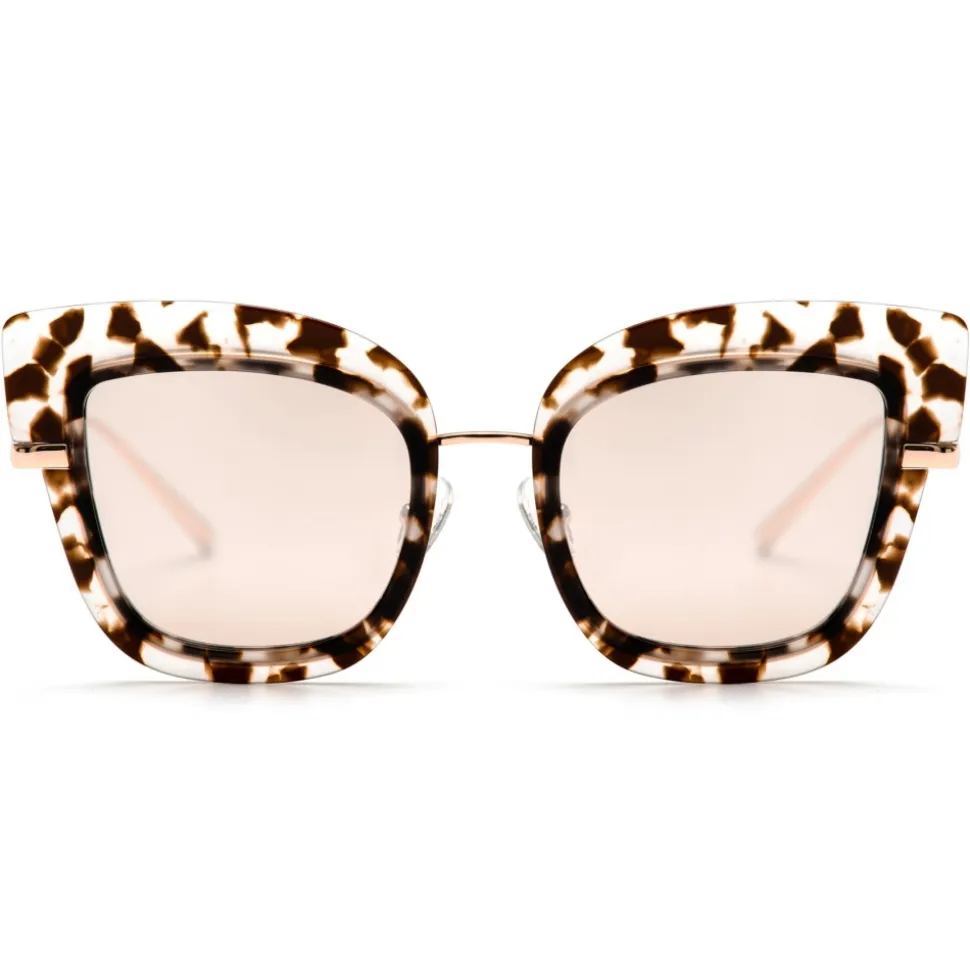 Butterfly sunglasses model 81031. New No Logo model available in three beautiful colors all with polarized lenses. The frame is in metal finished with terminals and circles in acetate combined with the lenses. The clear tortoiseshell model features brown mirrored lenses.