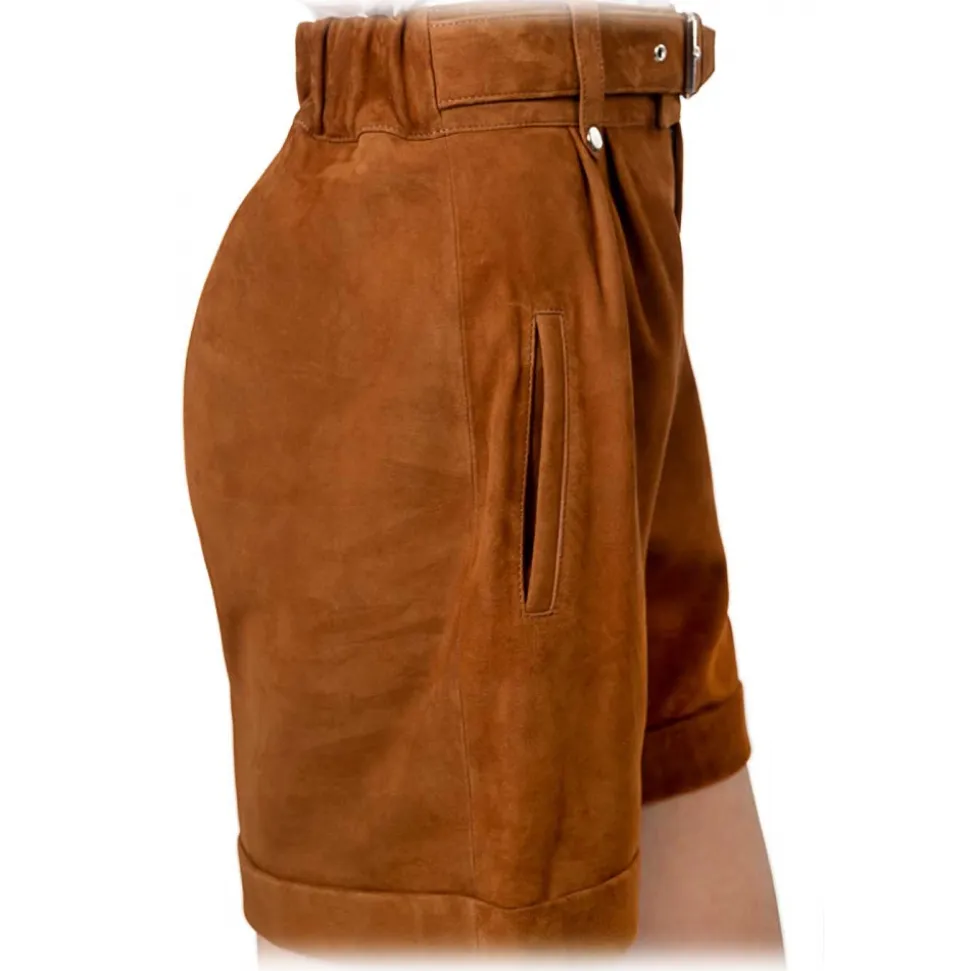 The rosie high-waisted shorts allow a style that is both casual and elegant. in lambskin or nubuck, its long cut and low cut on the thigh gives it comfort and lightness for better freedom of movement. it adapts to all morphologies for a chic and feminine look.
