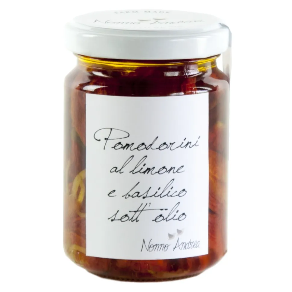 Due to their soft and full-bodied consistency, the cherry tomatoes with lemon and basil are particularly indicated in combination with roast beef and beef carpaccio with a drizzle of extra virgin olive oil. Their citrus scent enhances the flavor of steamed white fish. It is advisable to consume them at room temperature, consume them within a few days.