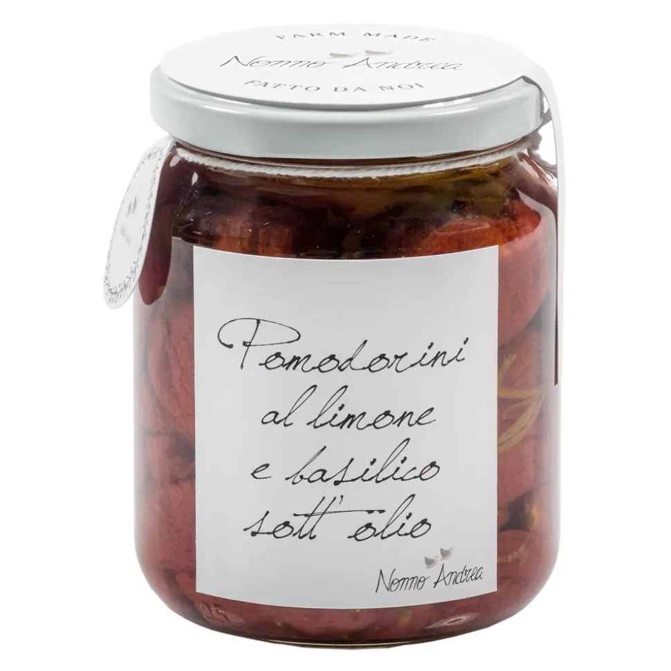 Due to their soft and full-bodied consistency, the cherry tomatoes with lemon and basil are particularly indicated in combination with roast beef and beef carpaccio with a drizzle of extra virgin olive oil. Their citrus scent enhances the flavor of steamed white fish. It is advisable to consume them at room temperature, consume them within a few days.