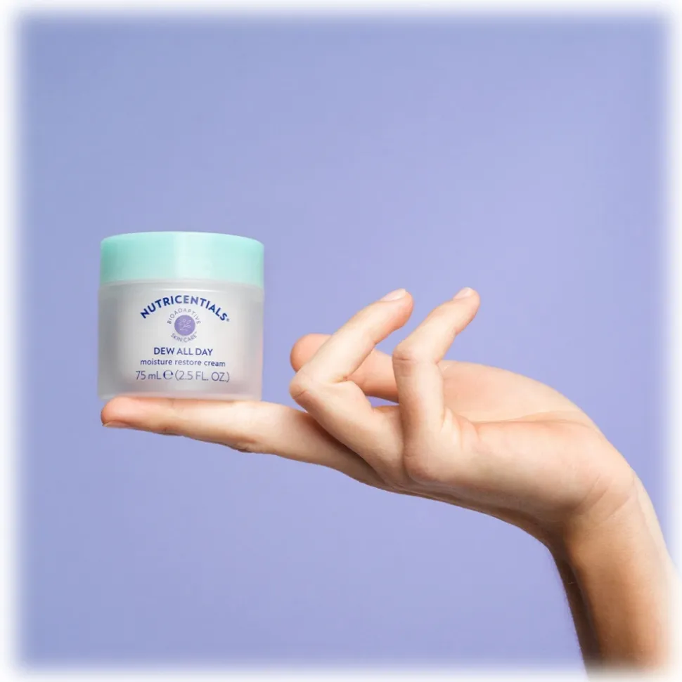 Your busy lifestyle doesn’t have to show on your skin. Nutricentials Dew All Day soothes, softens, and smooths your skin while providing all-day moisture so you can look your best no matter what stressors come your way. All while a blend of bioadaptive botanicals helps your skin increase its ability to adapt to its environment, helping it to better bounce back from life’s daily stressors day in and day out.