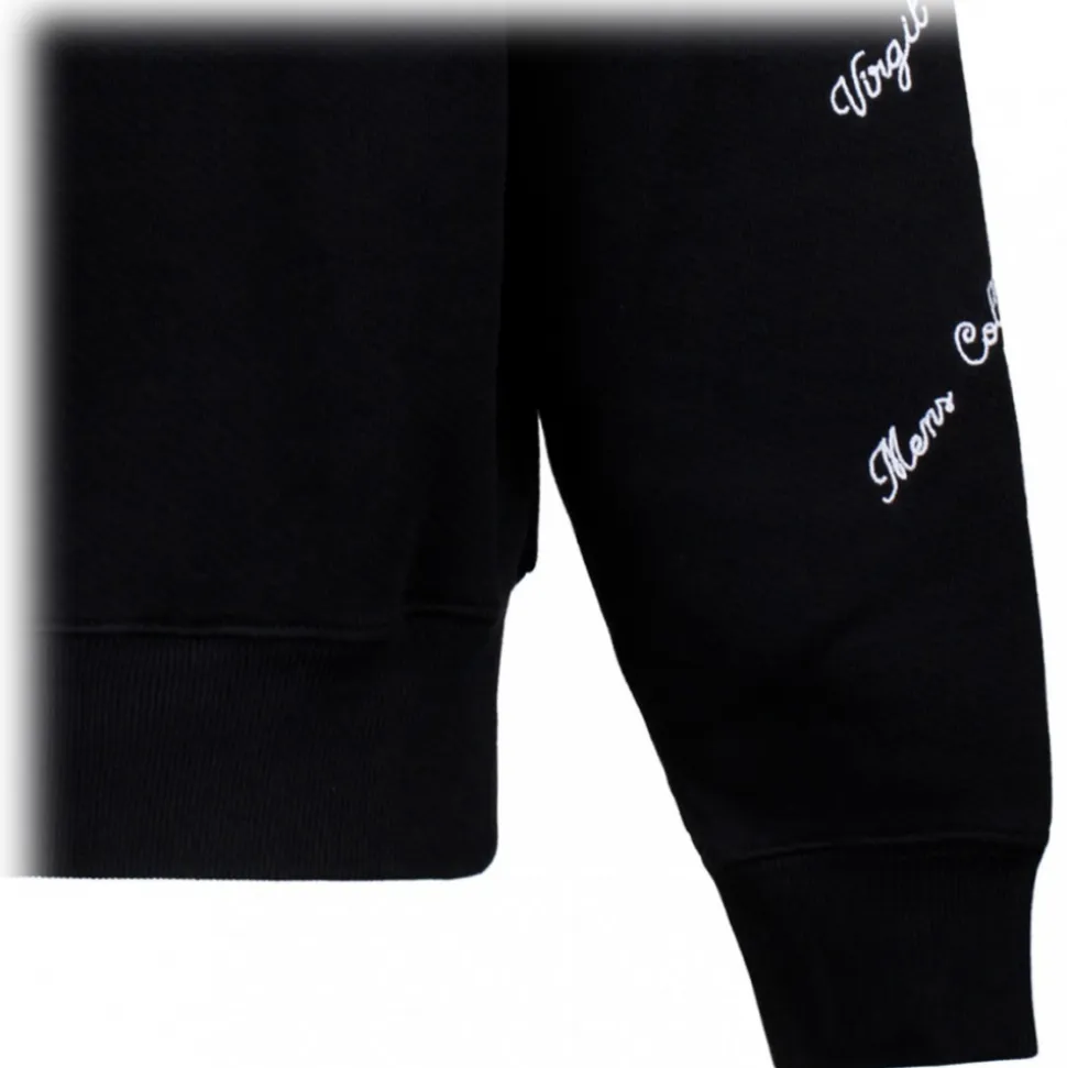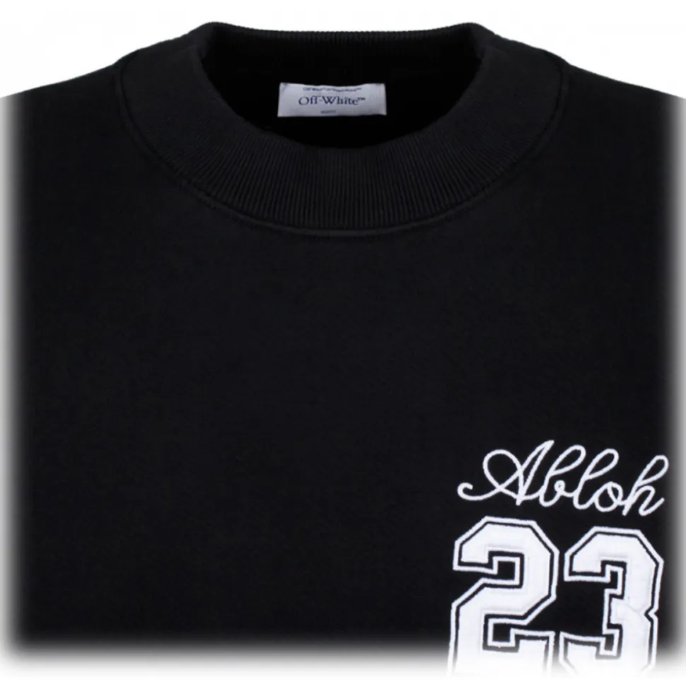 Off White 24 Logo Skate Sweatshirt. Black cotton sweatshirt, knitted construction, embroidered logo at the chest, sleeves and rear. Crew neck, drop shoulder, long sleeves, ribbed cuffs and hem, straight hem, towelling lining.