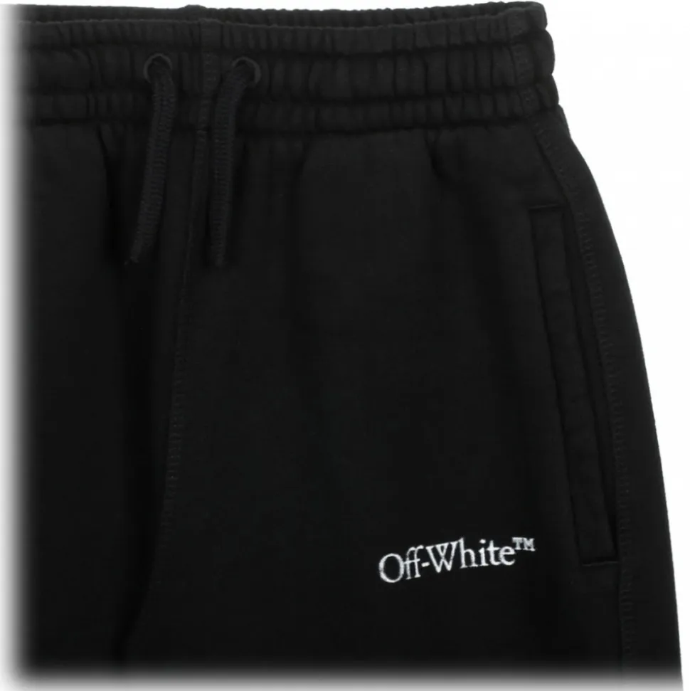 Off White Kids Black and White Cotton Track Pants. Black and white cotton track pants, elasticated drawstring waistband, logo print to the front, slip pockets to the sides, elasticated ankles, straight leg.