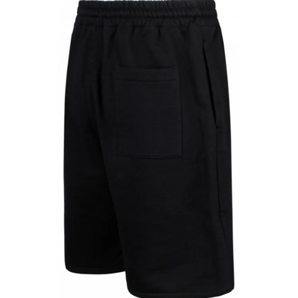 Off White Black Shorts. Black cotton shorts, elasticated waistband, two pockets in the side seams, back patch pocket.