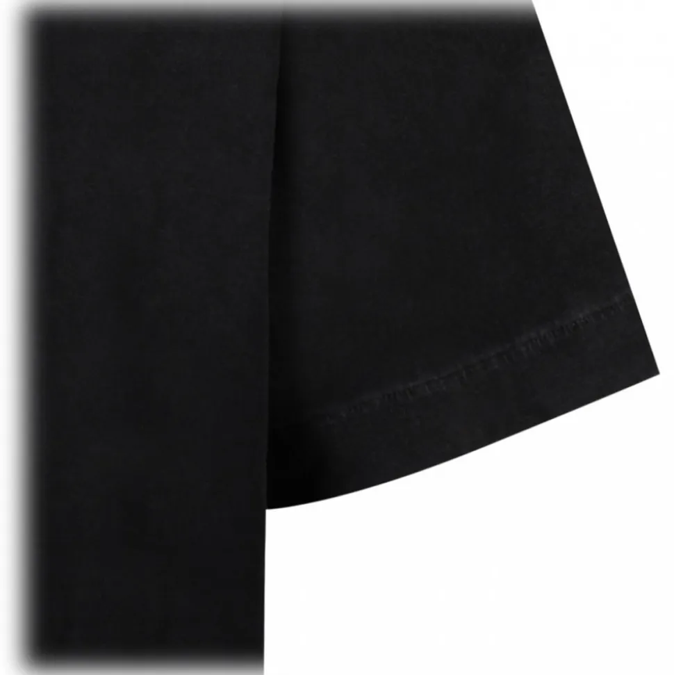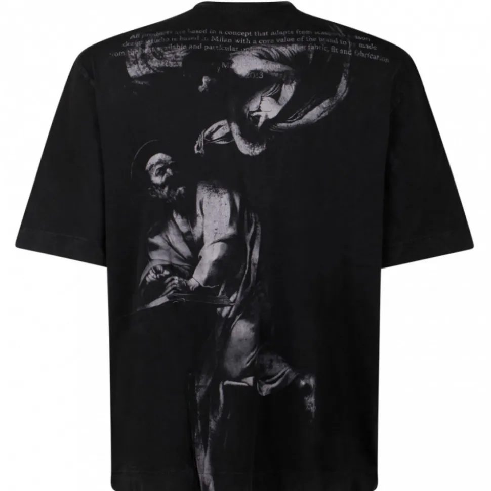 Off White S. Matthew Skate Logo Print T-Shirt. Black and grey cotton t-shirt, soft jersey, logo print at the chest, mock neck, drop shoulder, short wide sleeves.