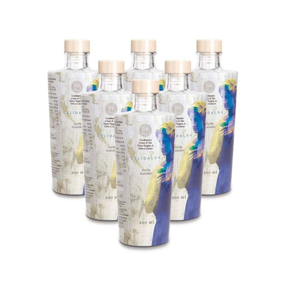 Celidalba lemon oil is a condiment based on extra virgin olive oil and lemons squeezed together, subsequently filtered to preserve only the essential oil of the lemons with the extra virgin olive oil.