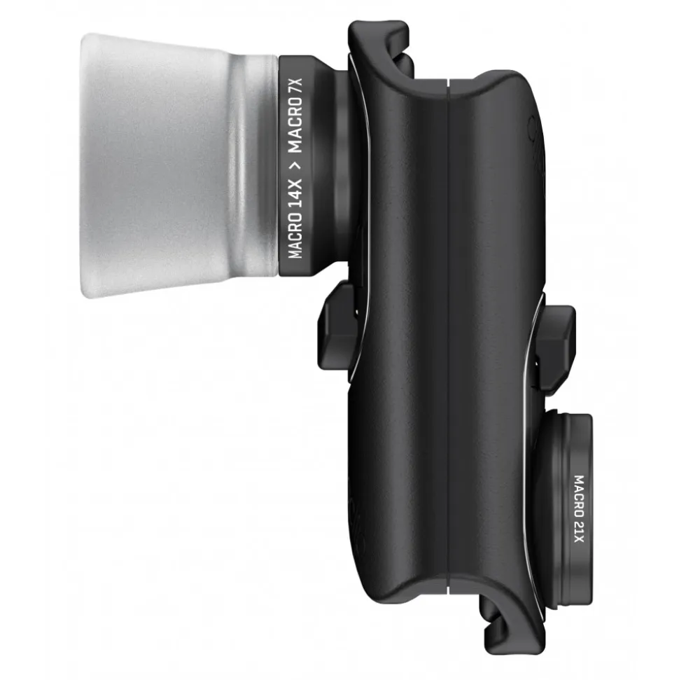 The Macro Pro Lens Set delivers the world’s best optical experience by transforming iPhone into a digital microscope or loupe. Advanced six-element optics get extra close to analyze, document and share beautiful macro photography and videography with edge-to edge clarity. Simply choose the level of optical magnification you want (7x, 14x or 21x) and achieve crisp close-up photos with greater depth-of-field and less pincushion distortion. Utilize the included InstaFocus™ hoods to naturally collect and diffuse light and facilitate instant focusing. See all the details in industrial, medical and professional photography.