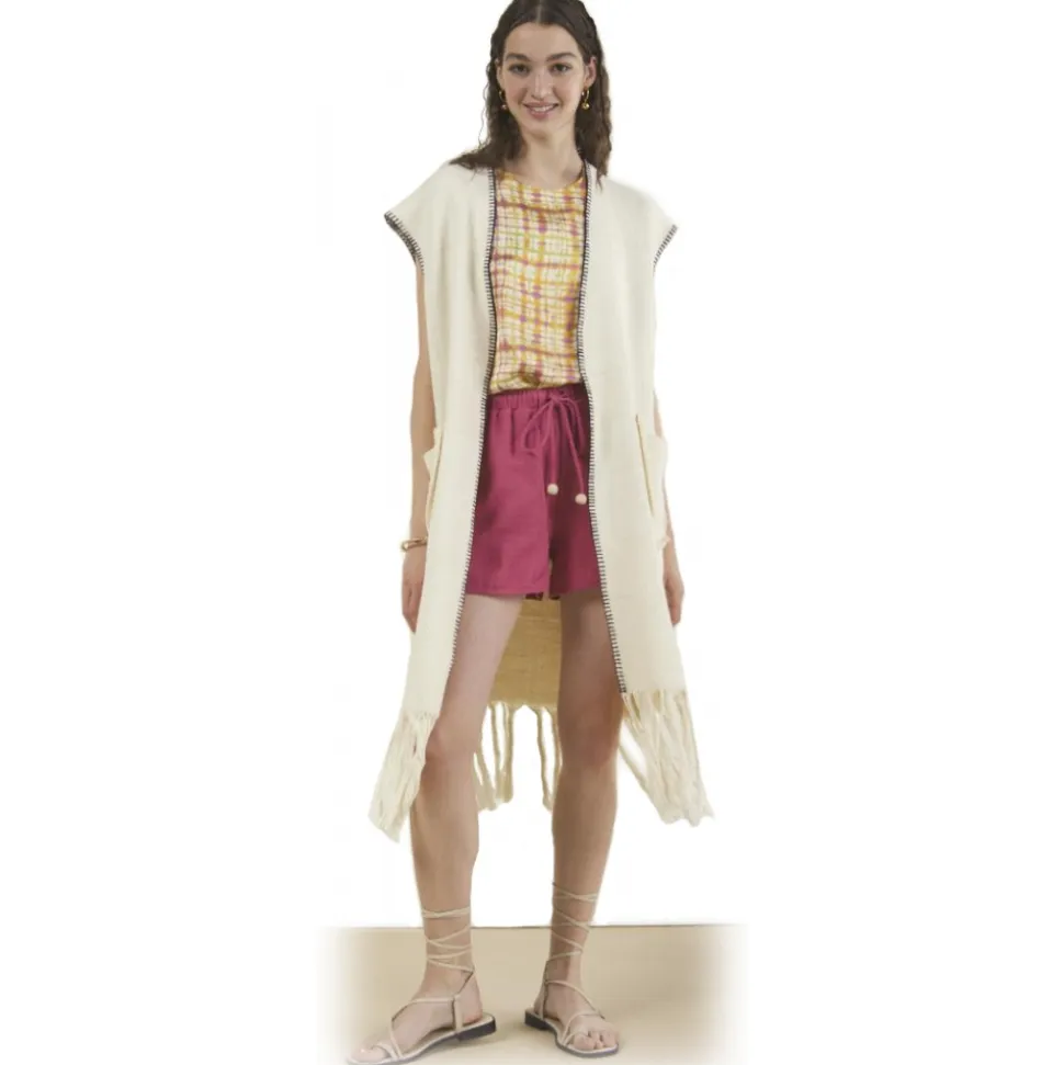 Ottod’Ame high-waisted shorts with oversized leggings, drawstring waist with two chinos pockets, embroidered logo on one side, in lightweight cotton fabric.