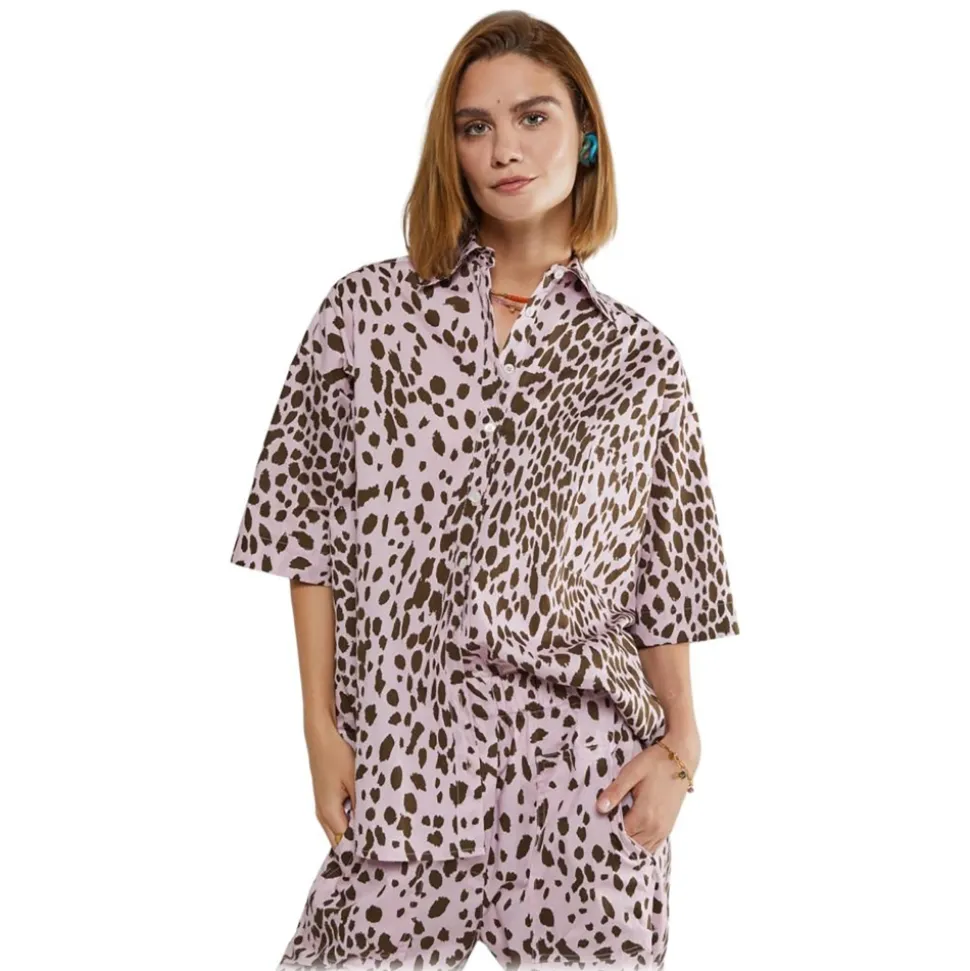 Ottod’Ame shirt, oversized, loose-fitting with short sleeves, collar and button fastening, in printed spotted pattern.