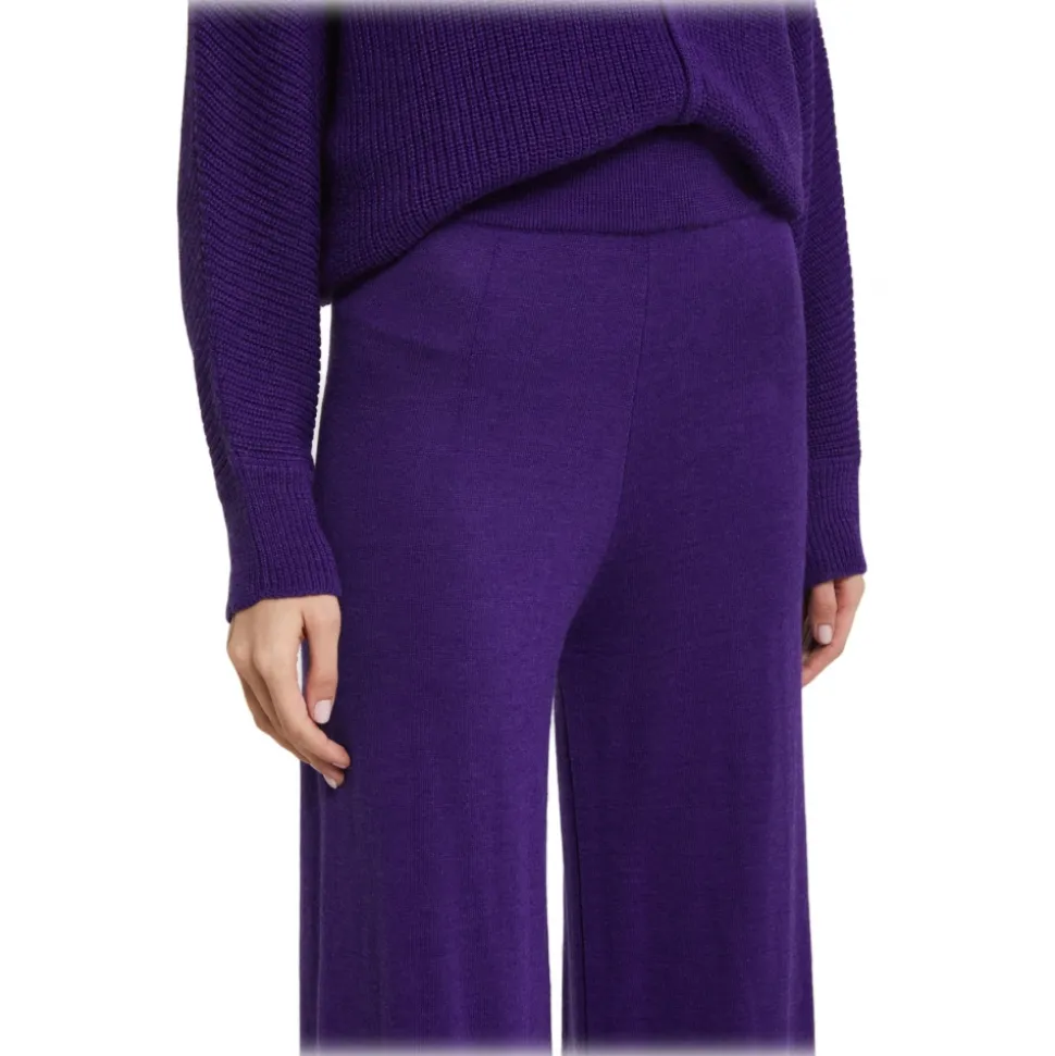Ottod’Ame – Wide Leg Trousers in Shaved Knit Yarn – Purple – Trousers – Luxury Exclusive Collection