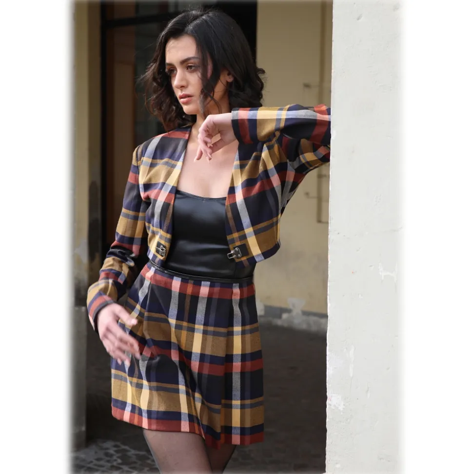 Paelì Couture – Dress Set in Faux Leather and Tartan – Brown Black – Dress – Made in Italy – Luxury Exclusive Collection