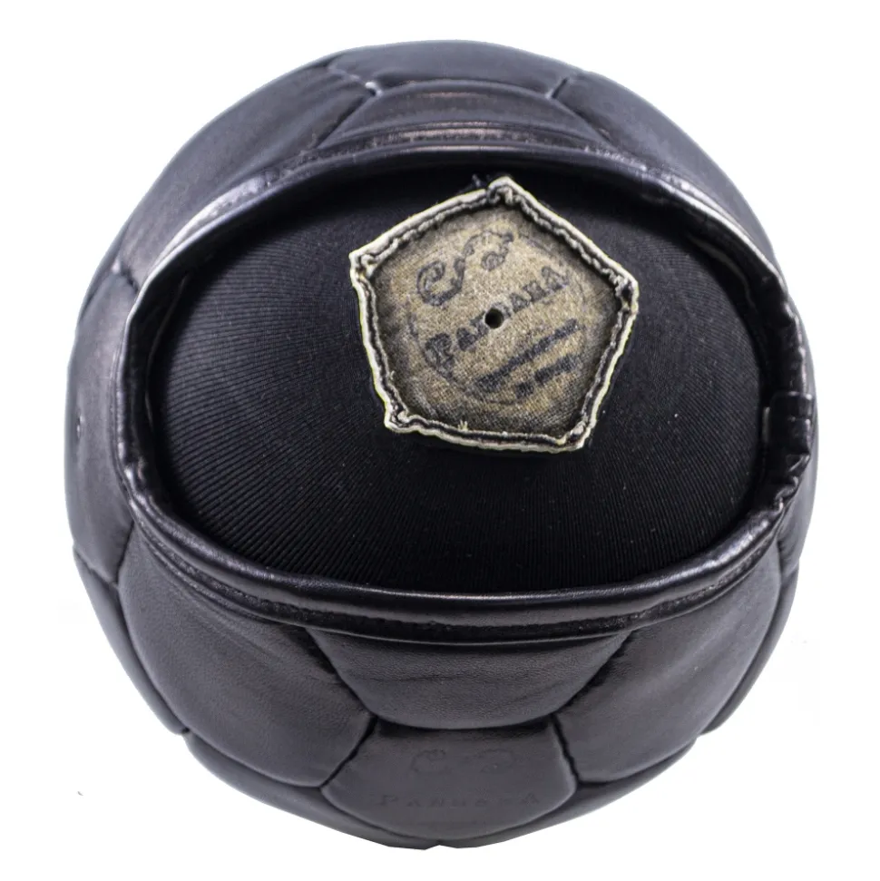 Each bag is packaged in a colored panama fabric bag to which a cross of cotton thread is applied by hand that recalls the net of the football goal.